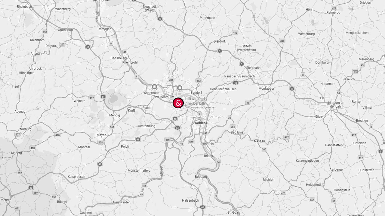 Ja, das Wohnkaufhaus in Mülheim-Kärlich liegt zentral und ist aus Koblenz, Neuwied, Andernach, Mayen und dem Westerwald schnell erreichbar.